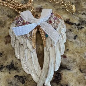 NECKLACE! Betsey Johnson Angel Wing Pendant Necklace with Gemstones & Bow BNWT