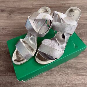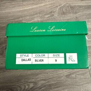 Have a new in box pair of Lauren Lorraine Dallas Ankle-Strap Elastic Dress Stiletto Heels Sandals. In a silver glitter. No flaws, please refer to pictures for details. Women Size 9
