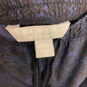 Athleta Brooklyn Jogger Black & Blue Size 4. Excellent pre-owned condition. Super stylish and comfy. Perfect for travel, work or on the go! Quick drying, wrinkle resistant. Multiple pockets. Please ask any questions!