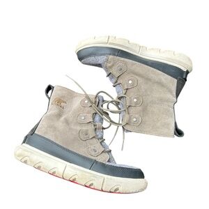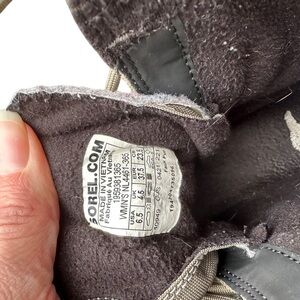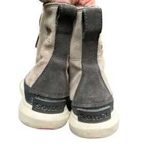 Durable Sorel boots for kids. Tan and gray design. Ideal for outdoor play.