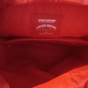 Sprayground Red/White Checkard, Moneysign, Sprayground Logo Bookbag Backpack Large New With Tags. Brandnew With Factory tags. Bookbag Backpack. Buckle type closing on the front and has a drawstring on the inside top. Two shoulder straps so you can carry the backpack. Has pockets on both sides and one big pocket on the inside to store a laptop or something. No rips, holes, no stains or foul smells. Vegan leather. Has a pocket on the back bottom of the backpack. Will come exactly as pictured. You will not find this backpack in stores. So go ahead and cop this great backpack, you will not be disappointed. 100% authentic guaranteed. (Please see pictures for an idea of condition.