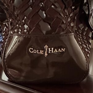 Great condition Cole Hann handbag w/shoulder bag. Chic woven design. Rich dark brown leather.
