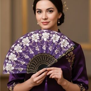 ✨Elegant Purple Floral Hand Fan