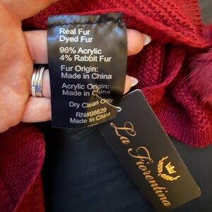 NWT La Fiorentina Burgundy Knit Scarf with Pom Poms