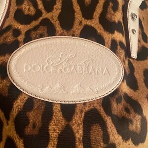 Chic Dolce & Gabbana tote featuring a bold leopard pattern. Cream accents enhance its stylish look. Perfect for any fashion-forward ensemble.