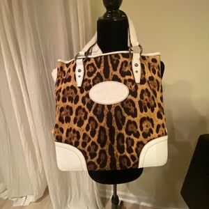 Dolce & Gabbana Animalier Brown Leopard Tote with white Accents W/COA