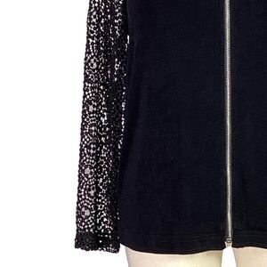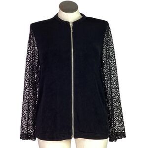 Chicos Jacket Womens 2/12 Large Black Travelers Lace Travel Knit Full Zip Bomber