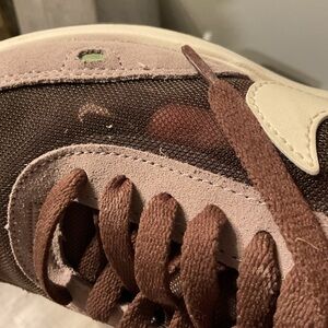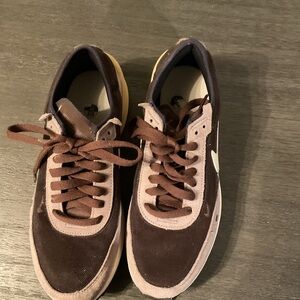 Stylish Nike sneakers. Brown upper with cream accents. Comfortable and trendy. Feel free to make offers