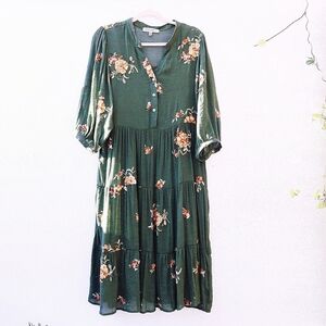 Anthropologie Figueroa & Flower Green Maxi Dress with Embroidery, Boho