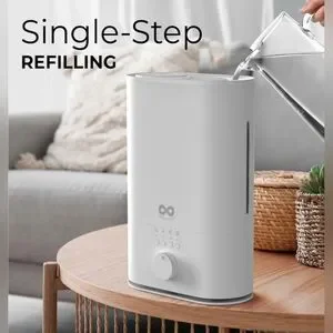 TOP-FILL, LEAK-PROOF & EASY TO CLEAN DESIGN: Built for convenience, the top-fill tank design allows quick refills without spills. The smooth, modern filterless design is easy to clean, ensuring the humidifier maintains peak performance. Its large water tank