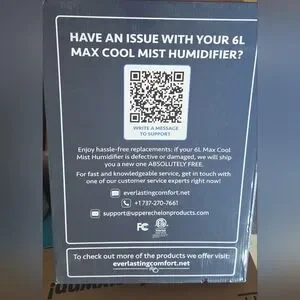 Everlasting Comfort 6L Humidifier Large Room, High Mist Output 60HR Runtime