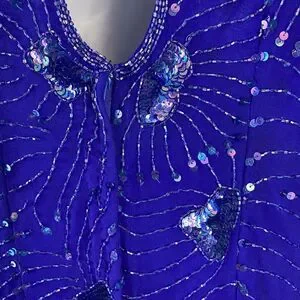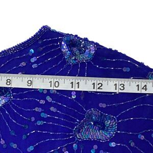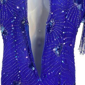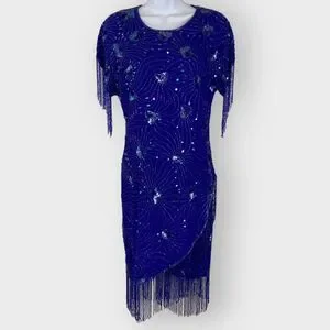 Stenay Womens Evening Silk Dress | 8 | Sequin Beaded Fringe | Royal Blue