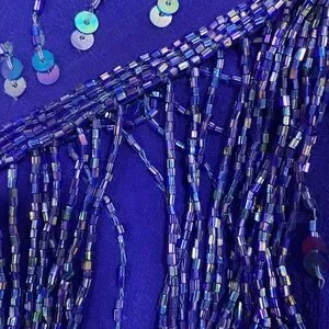 - No rips or stains; there are several beaded fringe strands that have been lost (pictured separately)