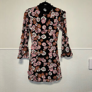 French Connection Lace Astrida 3D Embroidered Floral Mod XS Eur Black Size 4 US