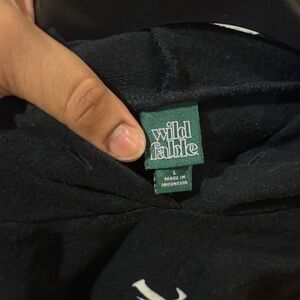 Chic black cropped sweatshirt. Features a stylish hood. Ideal for layering.