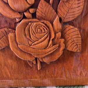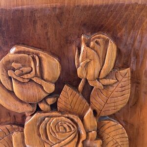 Art Vintage Hand Carved Flower Wall Hanging Plaque, 12” x 12”, Excellent Con…