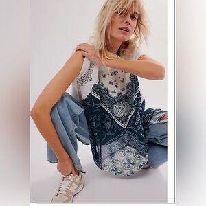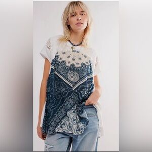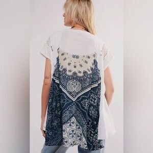 Your new favorite tunic top featured in a soft fabrication and billowy silhouette with open-knit detailing at the shoulders and a bold paisley-inspired print.