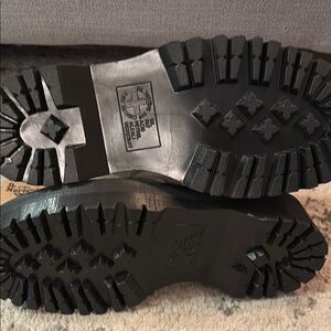 Stylish Dr. Martens Chelsea boots. Sleek white leather. Iconic yellow stitching. Durable black sole.