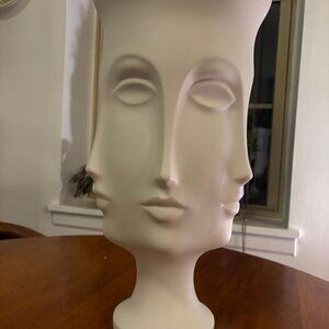 Striking Jonathan Adler Dora Maar urn, with three-dimensional faces on every side.