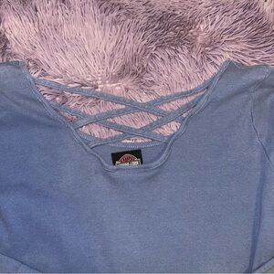 Vintage Mancuso Harley-davidson Women’s Top. Solid washed blue color, round neckline with crisscrossed detail on back, 3/4 sleeves, HD embroidered detail on chest. Mancuso embroidered detail on shoulder. 100% cotton. Very good condition . Pet and smoke free home.