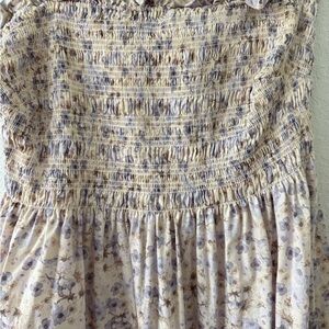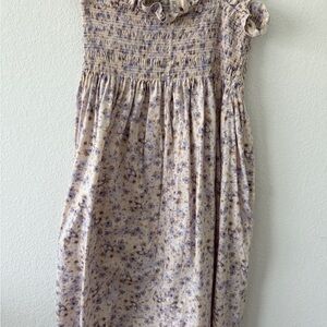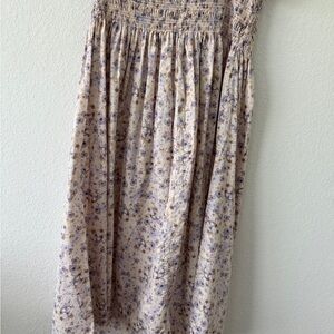 Charming floral dress featuring a delightful cream and purple design. Perfect for any occasion.