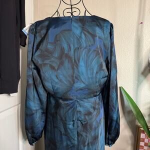 Features: subtle pleating at shoulder, a-line silhouette, v neck, princess seams, back zipper, tonal petal floral print, long sleeve,