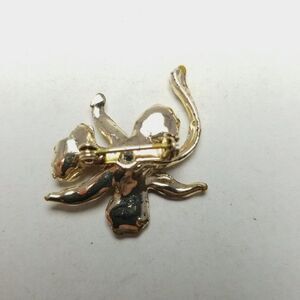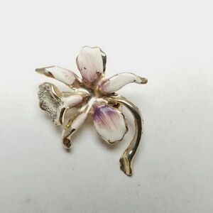 Vintage Orchid Shaped Floral Brooch, Purple White Enamel Gold Tone Setting Pin