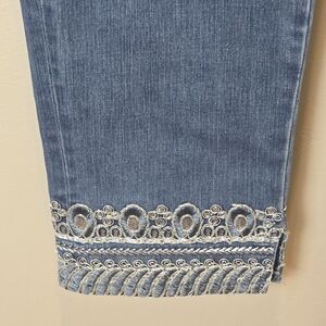 Soft Surroundings Straight Leg Blue Ankle Jeans with Lace Trim 10T NWT