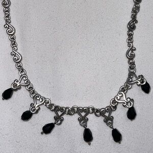 Vintage Brighton Vivaldi Necklace Black Glass Teardrop Dangles Silver Tone
