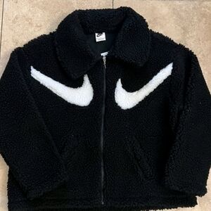 NIKE sherpa swoosh jacket Black and white oversized Fleece Jacket