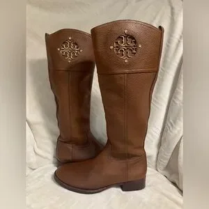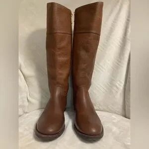 Elegant brown leather boots. Features signature logo detail. Perfect for stylish outings.