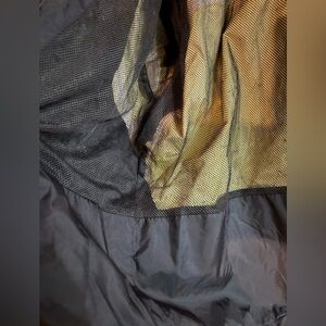 Thanks for the question. I added a picture to the listing that will hopefully answer your question. It only has one inner pocket which is shown in one of the pictures. The lining is mesh down to the “powder skirt” which is nylon as shown in the last picture. Hope this helps.
