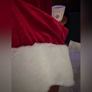 Sparkling red jumpsuit with white trim. Features festive button details and a black belt accent. Ideal for holiday celebrations. Ptp 14-16" inseam 26 1/2" waist 12-14"