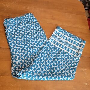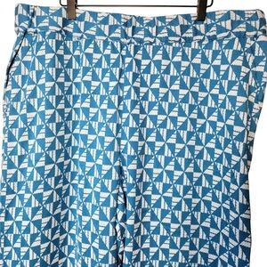 Soft Surroundings Narah Wide Leg Palazzo Pant Blue & White Geometric Print 1X