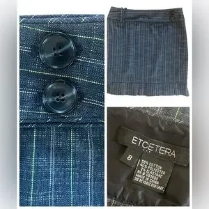 Etcetera Blue Green Striped Pleated Hem Skirt Sz 8