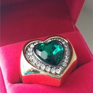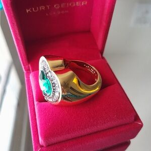 Kurt Geiger Gold Heart Ring with Emerald Green Stone