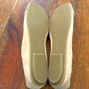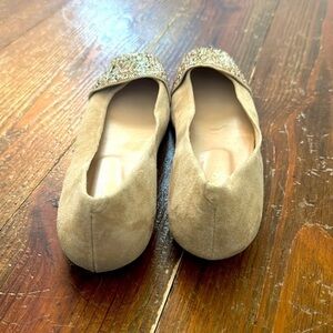 French Sole FS/NY Beige Suede Square Toe Ballet Flat Shoes w/Crystals Size 7.5