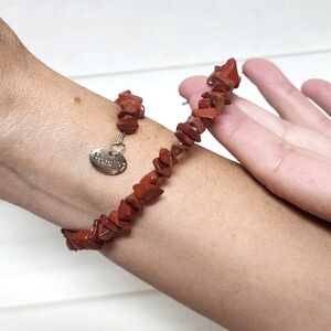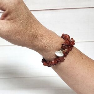 *Handmade coil wrap bracelet featuring natural Red Jasper chip beads in rich earthy red tones. Each stone is unique, giving the bracelet a beautiful organic, rustic look.