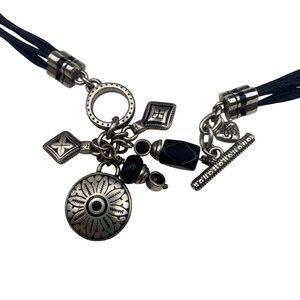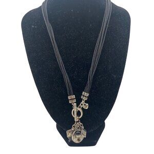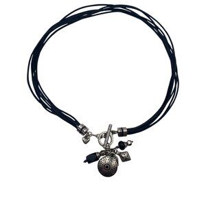 Signed Brighton Black Cord Necklace Multi Silver Plated Charms Toggle Clasp 17"