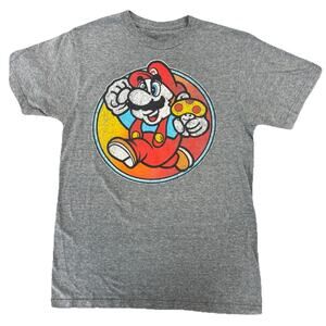 Super Mario Bros Men’s S Graphic Tee Retro Gamer Shirt Vintage Look NintendoGray