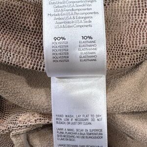 Zip fly with hook and bar closure. Faux suede fabric with metallic accents. Stretch fit. 10" at the knee narrows to 8" at the leg opening