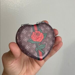 5/$25🎀 Heart-Shaped Compact Mirror with Red Rose Design