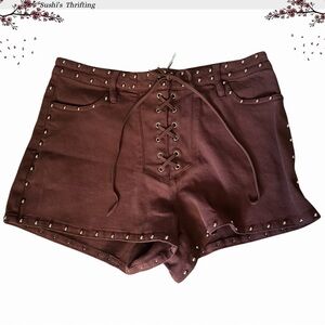 • Style: Desert Lace Up Shorts – Studded Brown Denim