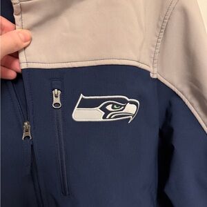 Seattle Seahawks full-zip soft shell jacket NFL navy blue & gray logo Large L