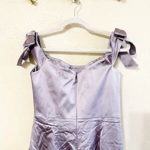 This Verona Dress features a strapless corset bodice adorned with bows, giving a flattering look. The tea length design offers a classy and feminine touch, making it perfect for any special occasion. The perfect choice for those who want to look effortlessly chic and elegant.