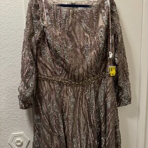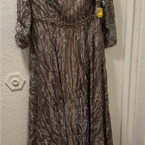 Mac Duggal Dress 79261 Mocha Sequin Long Sleeve Bateau A-Line Size 14 $798