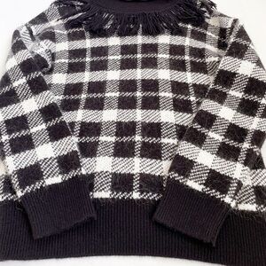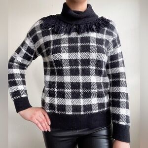 Kate Spade Heritage Western Checked Mohair Fringe Turtleneck Sweatshirt