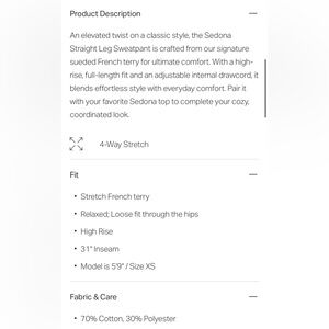VUORI Sedona Split Ankle Hem Wide Leg Sweatpant- Size Small