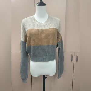 Hollister women's colorblock cropped knit sweater in beige/cream, brown/tan, and gray size small see pics for flat measurements