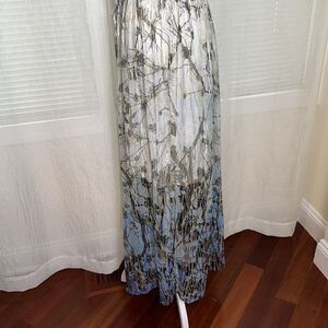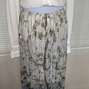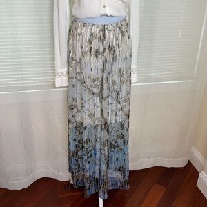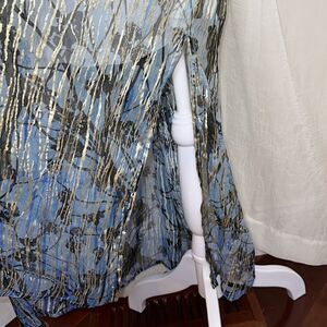 Anthropologie M Light Blue Gold Gray Black Metallic Sheer Chiffon Maxi Skirt